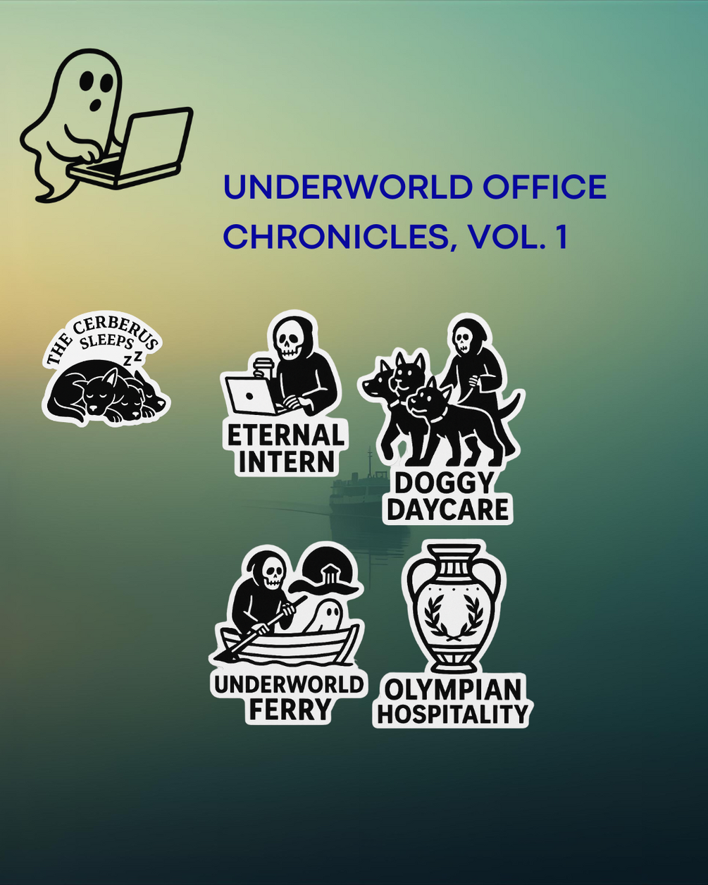 A funny, myth-inspired story collection and art series from Charon’s Intern, exploring life (and work) in the Underworld. Includes exclusive art of Cerberus, Charon, and the Intern.